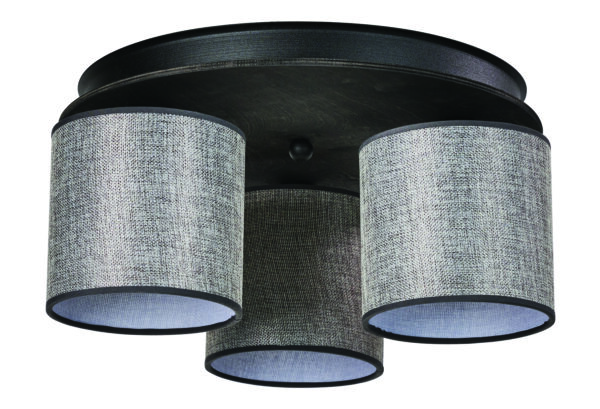 Φωτιστικό Οροφής 3φ με ξύλο σημύδα σε γκρι σκούρο χρώμα και αμπαζούρ Φ15 ύφασμα σε χρώμα γκρι